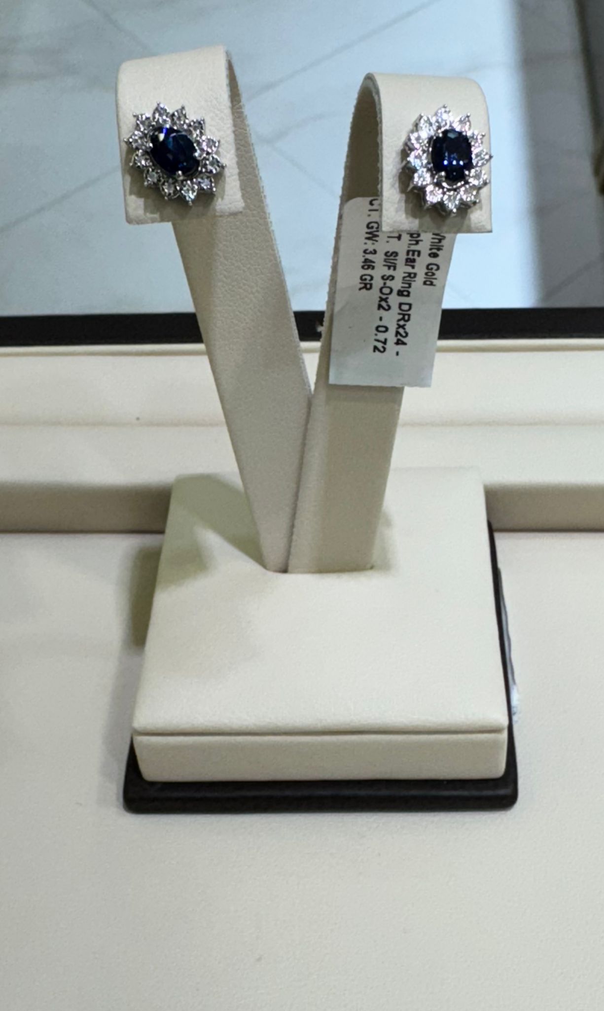 18K White Gold 0.05Ct Diamond + 0.72Ct Sapphire Earrings SI/F GW: 3.46 GR